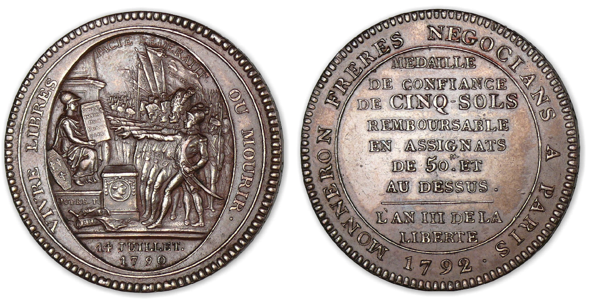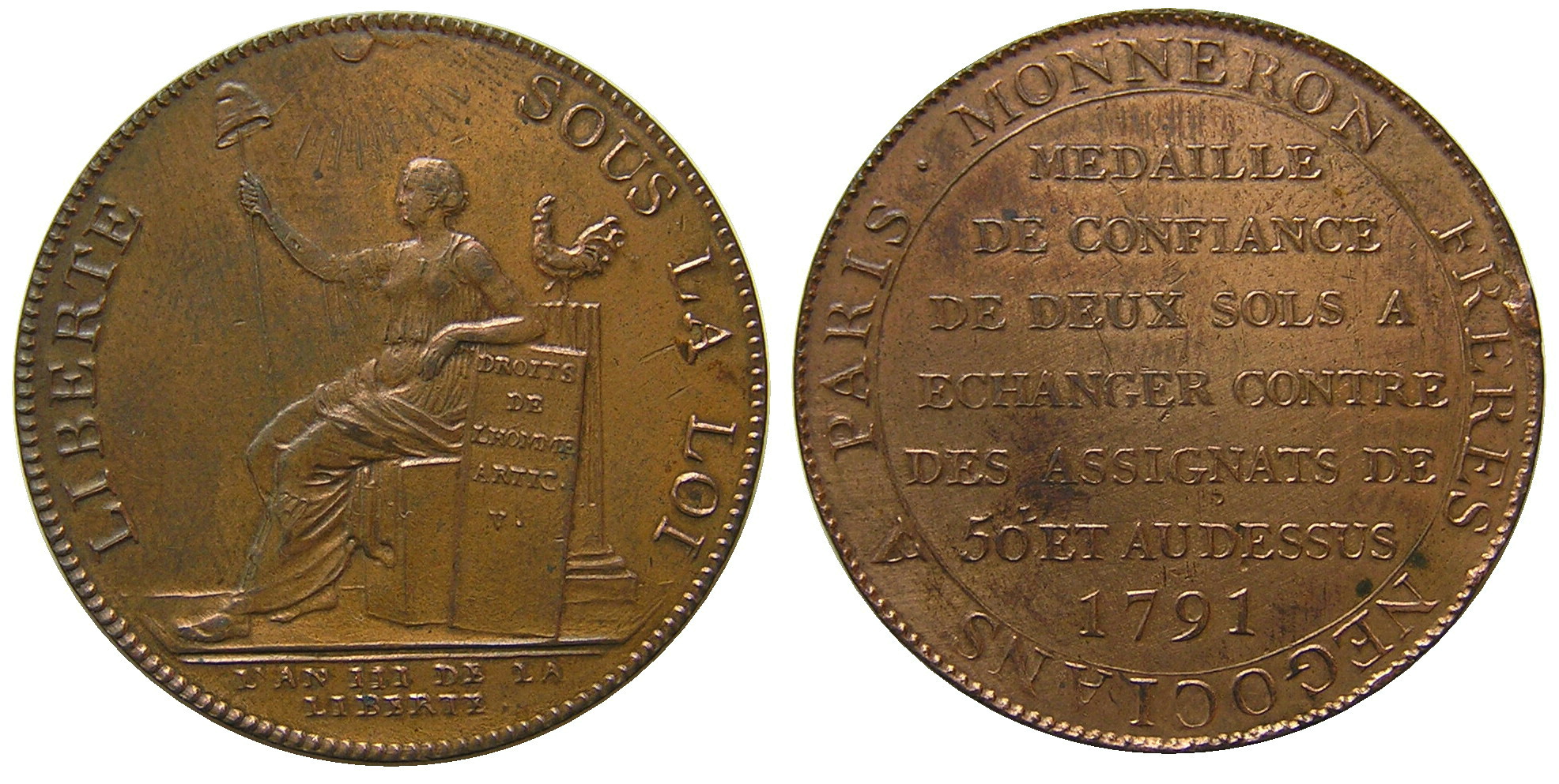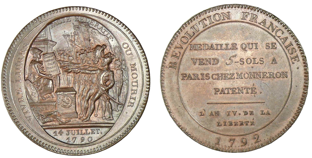 Serment du roi Ces Monneron qui sont en frappe médaille sont des médailles de collection. Ils sont généralement en très bon état.