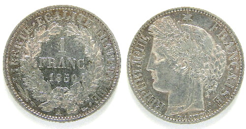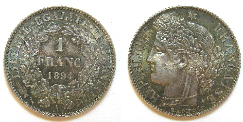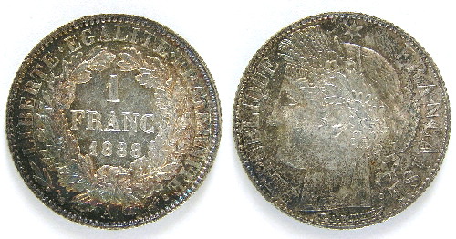 les pièces en argent, cet état est rare. La 1fr de 1888