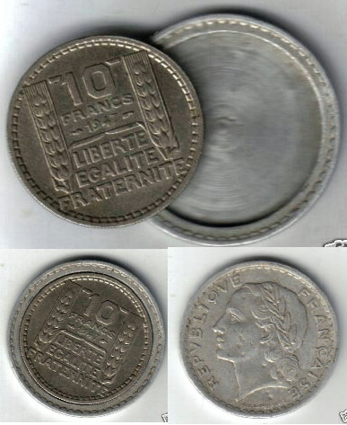10fr 1948B qui semble en nickel, de 28mm de diamètre