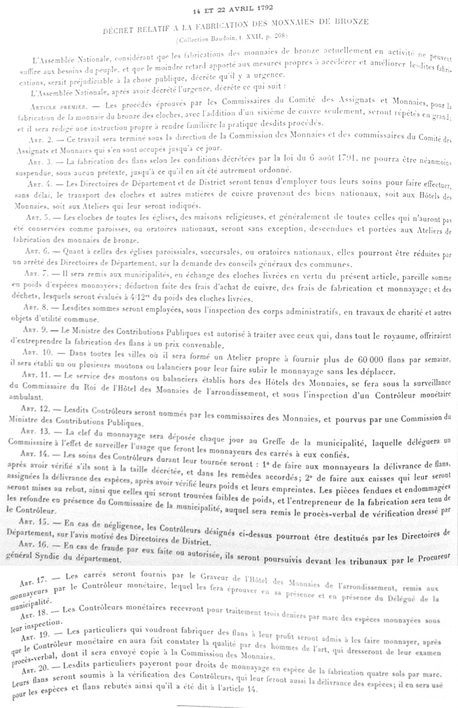 fondues en 1792 (Décret