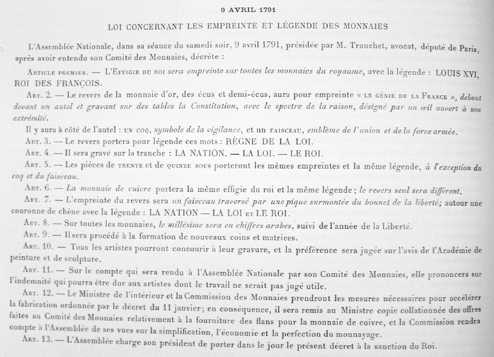 1791 concernant les nouvelles empreintes et légendes