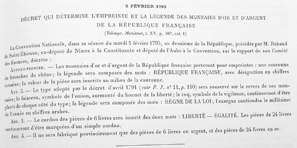 de fabrication : 31 mai 1793 Retrait : Loi du 30