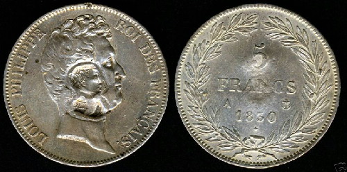 où l'on trouve une effigie de Louis-Philippe à tête